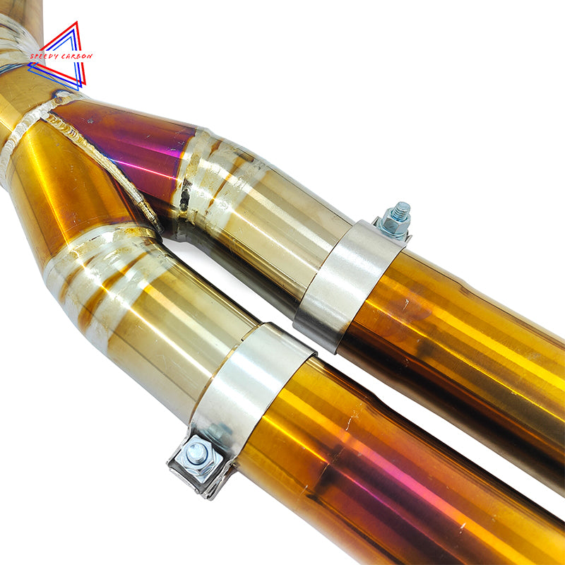 The BMW G8X M3/M4 Titanium Midpipe is a high-performance exhaust upgrade that combines lightweight titanium construction with exceptional durability and heat resistance. This midpipe reduces backpressure, improving exhaust flow and increasing horsepower and torque for better overall performance. Its lightweight design not only enhances performance but also contributes to a more aggressive, sporty exhaust note. Perfect for enthusiasts looking to optimize their G8X M3/M4’s power and achieve a more dynamic sound while reducing weight for an enhanced driving experience.